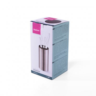 Подставка для ножей Fissman - это надежное и стильное решение для хранения ваших ножей. Изготовленная из высококачественной нержавеющей стали, она дает долговечность и устойчивость к коррозии. Стальной цвет подставки легко впишется в любой интерьер вашей кухни. С высотой 22 см и диаметром 11 см, подставка имеет идеальные размеры для удобного размещения ножей. Её можно использовать для хранения разнообразных ножей, что делает вашу кухню более организованной и безопасной. Кроме того, данная подставка не предназначена для мытья в посудомоечной машине, что стоит учитывать при уходе за ней.