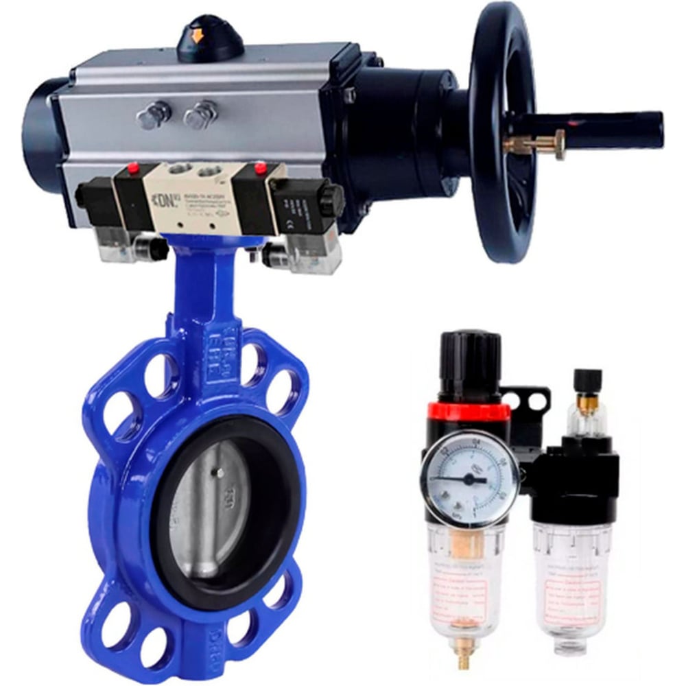Затвор DN.ru QT450-QT450-EPDM-2W-Fb-H Ду100 пневмопривод дисковый